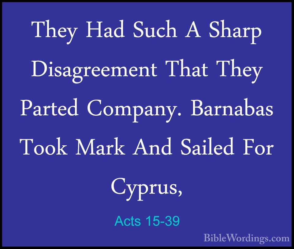 Act 15:39 And the contention was so sharp between them, that they departed asunder one from the other: and so Barnabas took Mark, and sailed unto Cyprus;