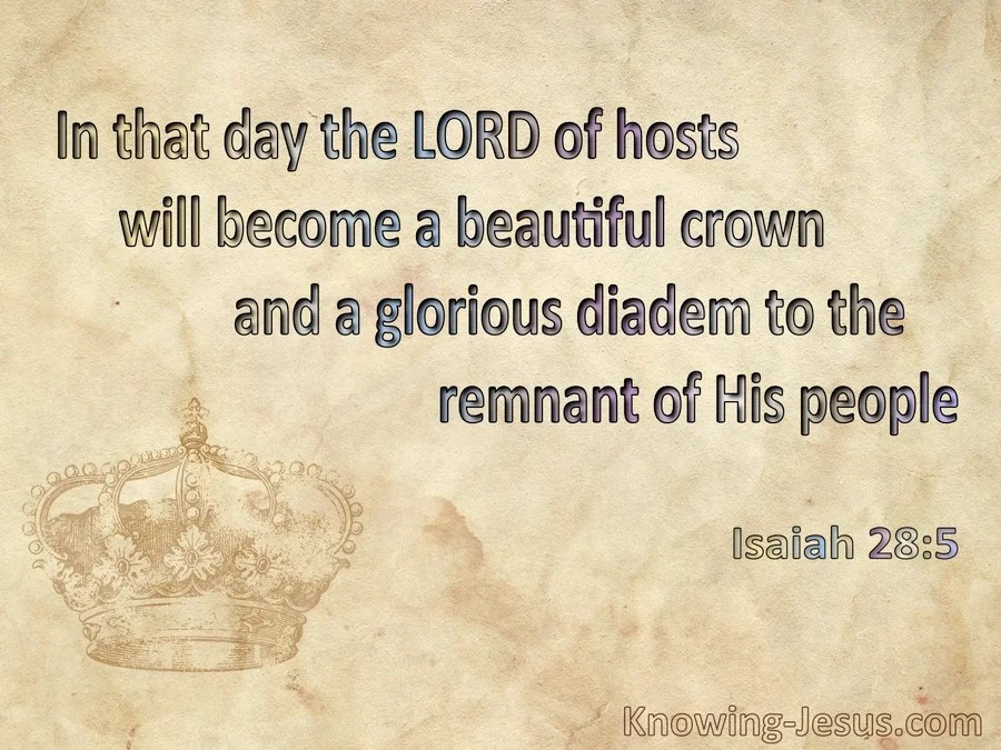 The Lord gives strength to His people, to His remnant. Even as the enemy encircles the cities of the world and evil lurks everywhere, God strengthens His people. To those who have lamented and wept over the state of he church and over the state of the world, God sees this and puts His mark upon them. In the previous verse it says that God will be “for a crown of glory and a diadem of beauty to the remnant of His people.” The beauty of the Lord is the beauty of Holiness. His people will shine with the holiness of God and the dark evil world will marvel. They will marvel at our strength and at our resolve to ascend to higher ground. The Lord of Hosts is our higher ground. In Him we shall stand or fall. By Him we shall be unmoved by our enemies. We shall hold the ground and not break ranks even as all the hordes of hell gallop towards us.