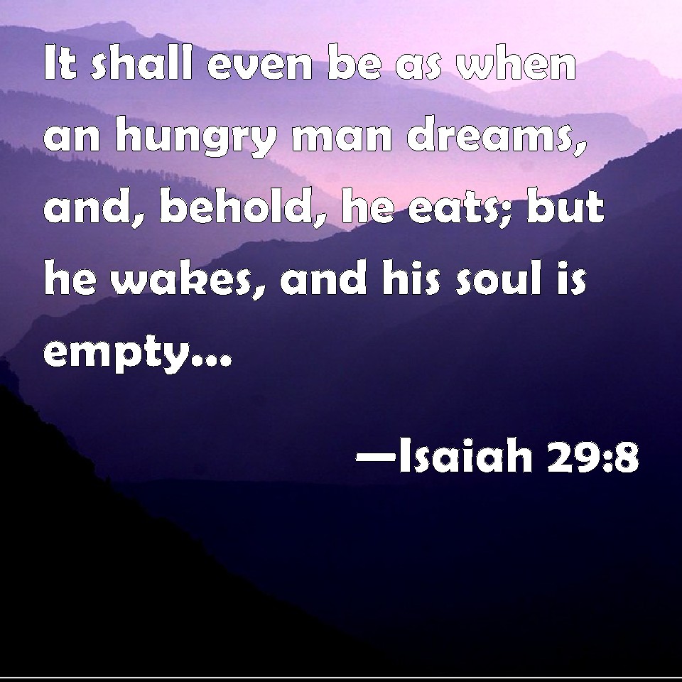 Isa 29:8 It shall even be as when an hungry man dreams, and, behold, he eats; but he awakes, and his soul is empty.