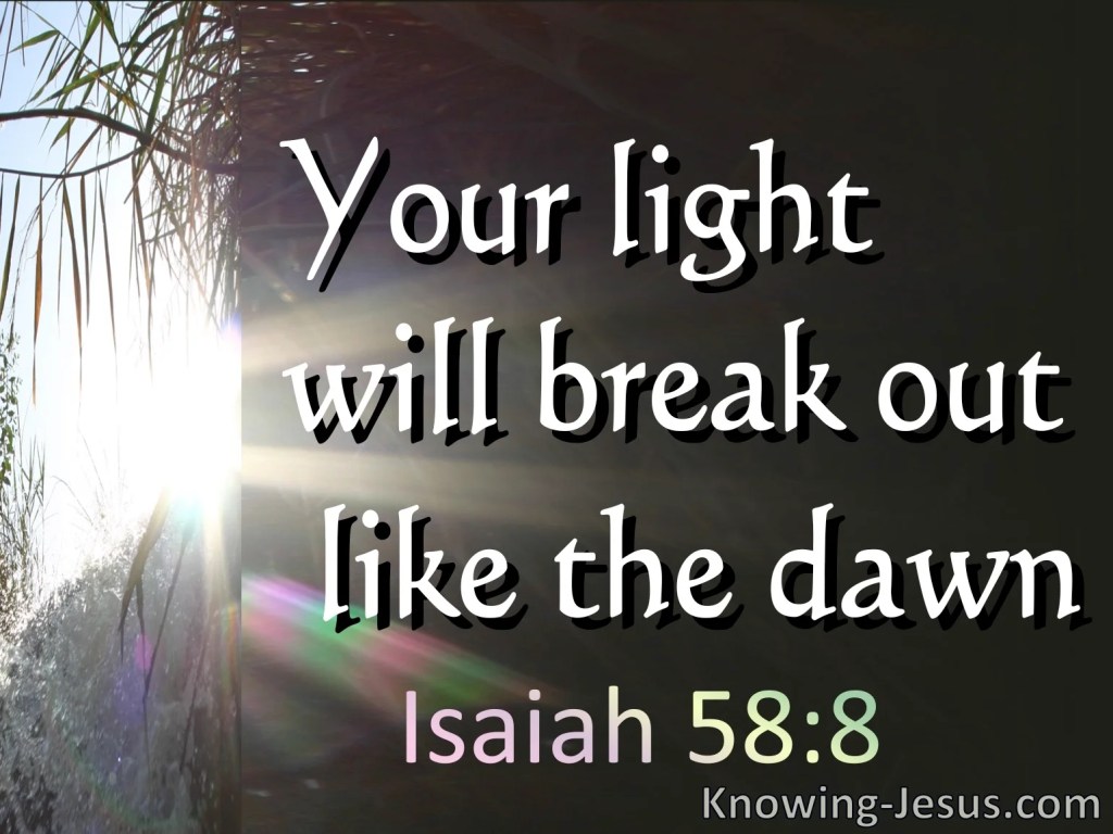 Isa 58:8 Then shall your light break forth as the morning, and your health shall spring forth speedily: and your righteousness shall go before you; the glory of the LORD shall be thy reward.