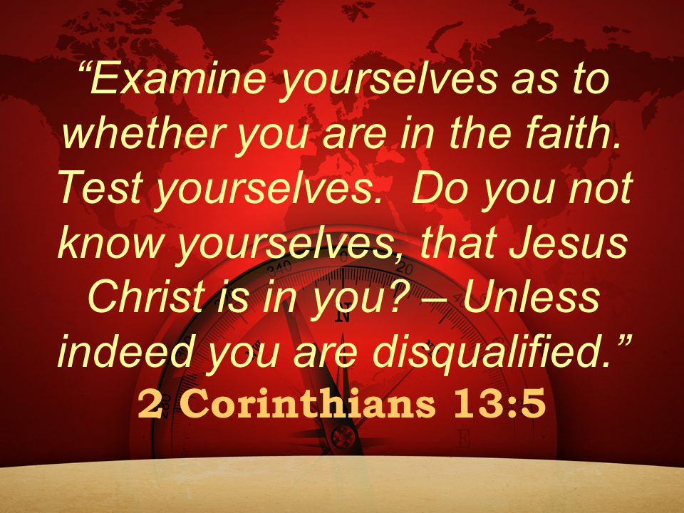 2Co 13:5 Examine yourselves, whether ye be in the faith; prove your own selves. Know ye not your own selves, how that Jesus Christ is in you, except ye be reprobates?