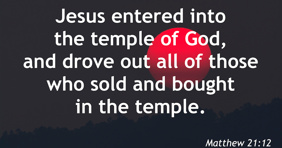Mat 21:12 And Jesus went into the temple of God, and cast out all them that sold and bought in the temple, and overthrew the tables of the money-changers, and the seats of them that sold doves,