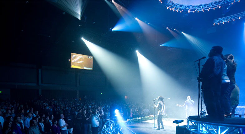 “Entertainment.” Without the presence of God we must entertain the masses. So, just like the movies and secular concerts, we dim the lights and highlight the platform, put a spotlight on it. The platform in and of itself is an idol. I believe Luther tore down the idol of “The Eucharist,” and helped raise up the idol of the pulpit, the platform, the elevated place. People can sit in darkness because nothing is required of them. All the “action,” is taking place front and center and elevated. Then add the dry ice smoke machines and you have the whole ghastly package. Entertainment rules supreme, concert style worship and dimmed lights make sure the spotlight is on “the front.” Actual congregational worship and the proper 1 Cor 14 setting is dead, and in its place Hollywood rules supreme. Hollywood meaning that which is contrived is made to look real. May God bring down the curtain on this abomination.