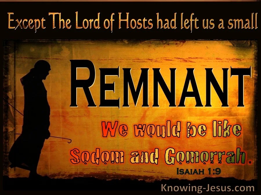 Isa 1:9 Except the LORD of hosts had left unto us a very small remnant, we should have been as Sodom, and we should have been like unto Gomorrah.