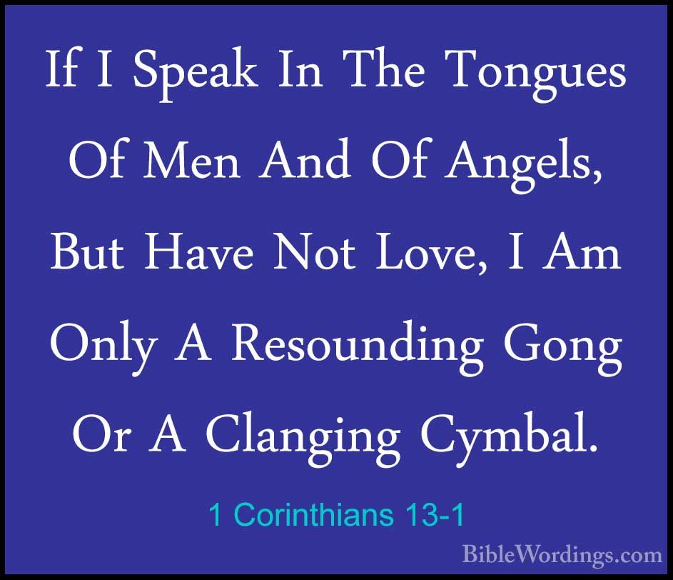 1Co 13:1 Though I speak with the tongues of men and of angels, and have not love , I am become as sounding brass, or a clanging cymbal.