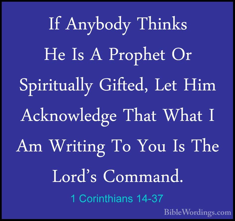 1Co 14:37 If any man think himself to be a prophet, or spiritual, let him acknowledge that the things that I write unto you are the commandments of the Lord.