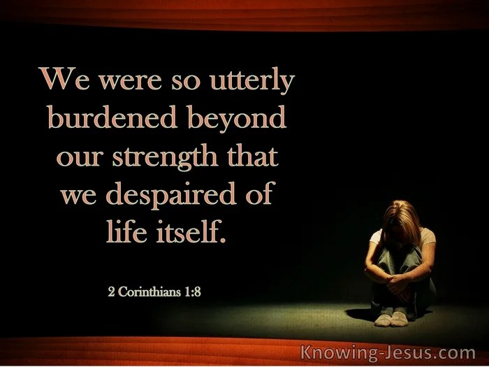2Co 1:8 For we would not, brethren, have you ignorant of our trouble which came to us in Asia, that we were burdened beyond measure, above strength, so that we despaired even of life: